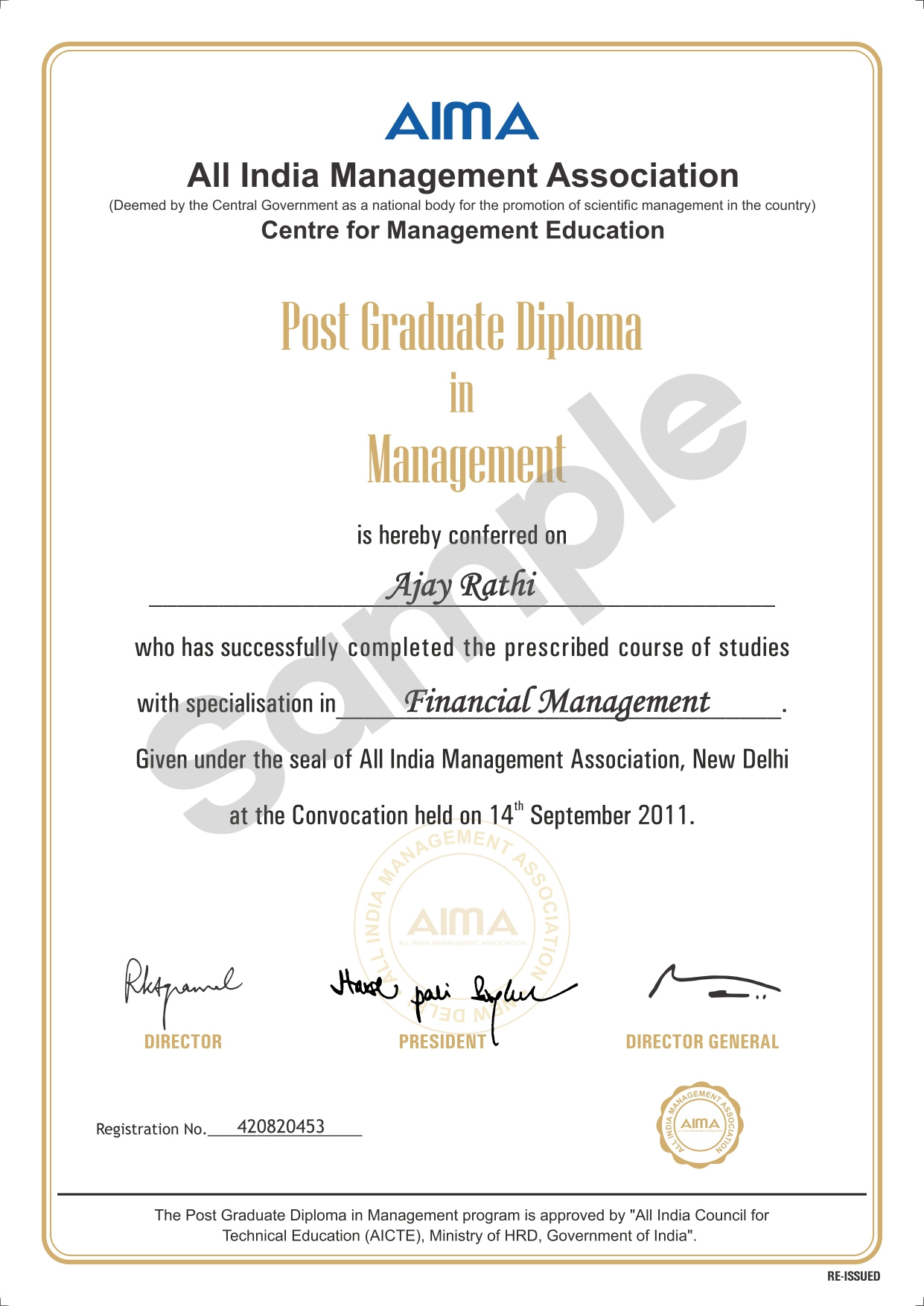 The Post Graduate Diploma in Management is awarded by the Talent Skillsvarsity, AICTE Approved Program and Affiliated to All India Management Association (AIMA)